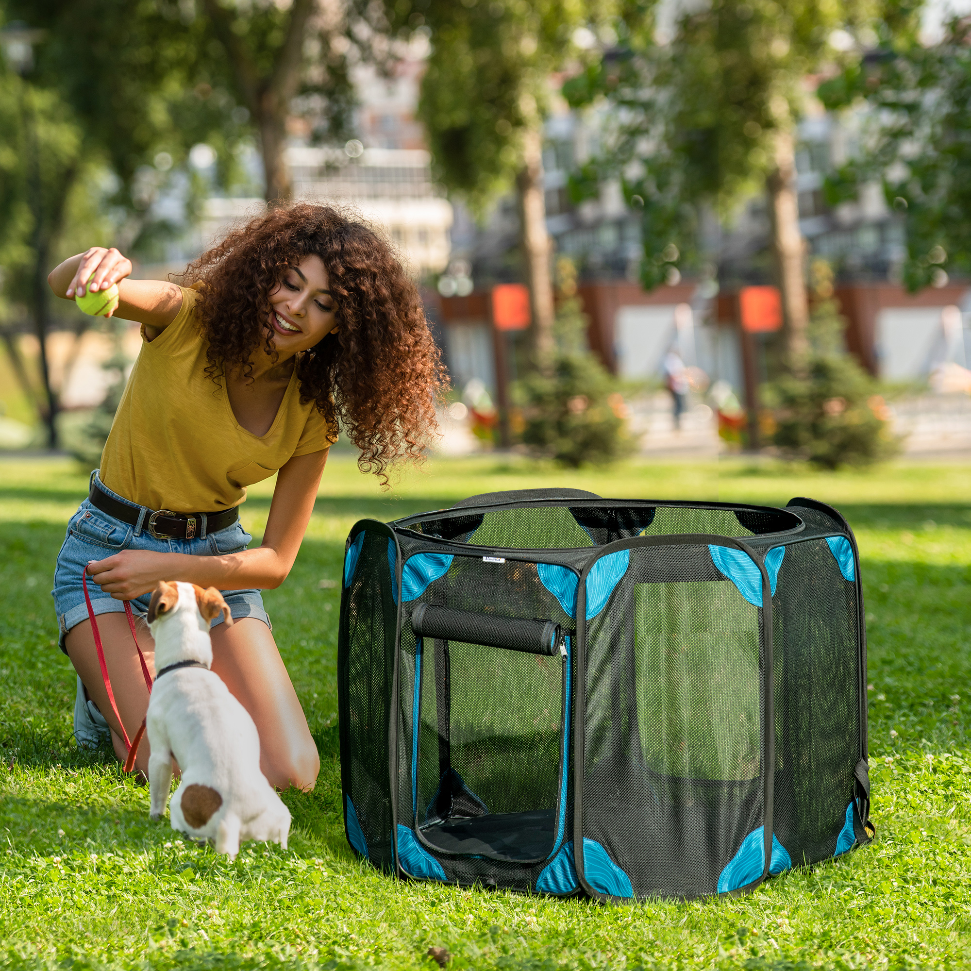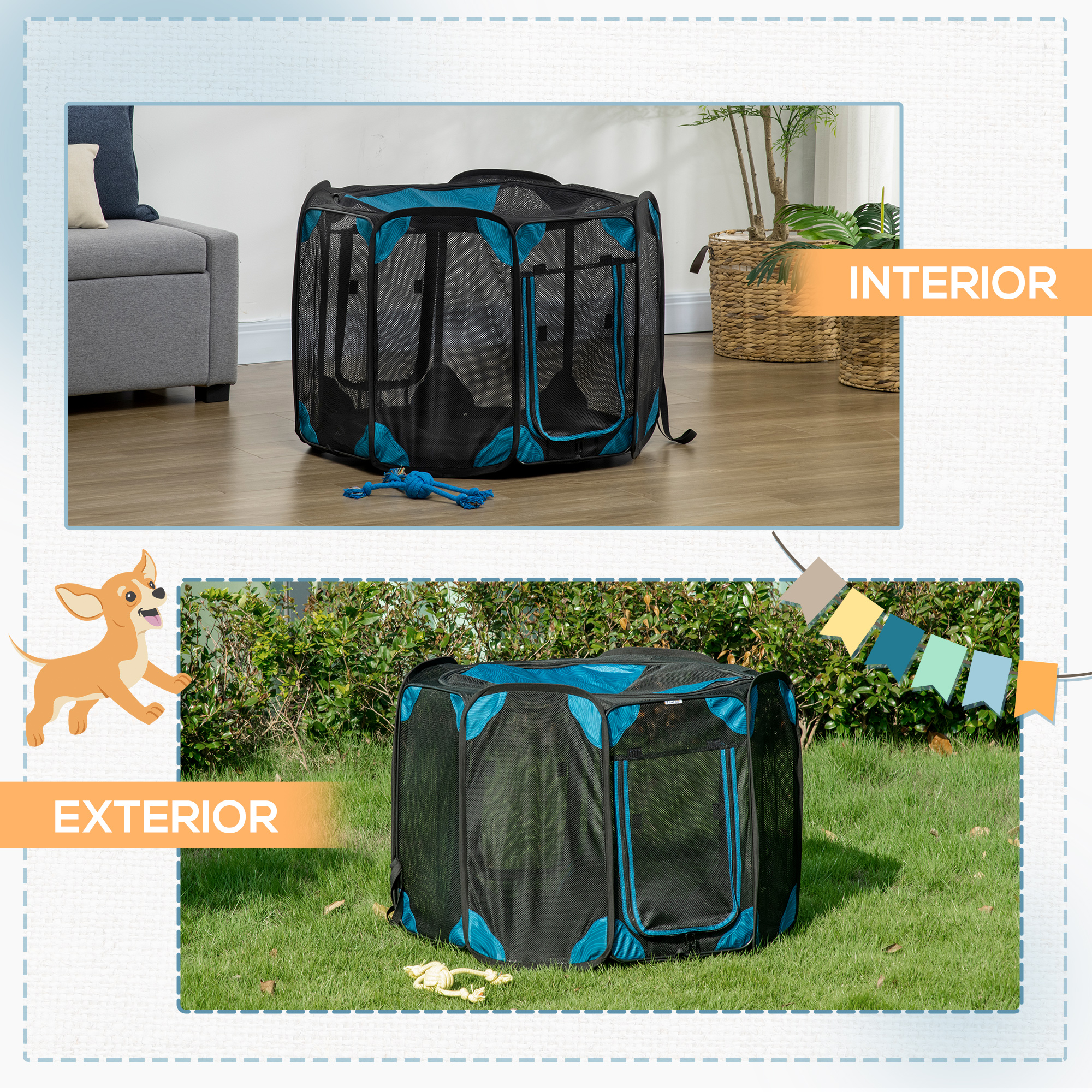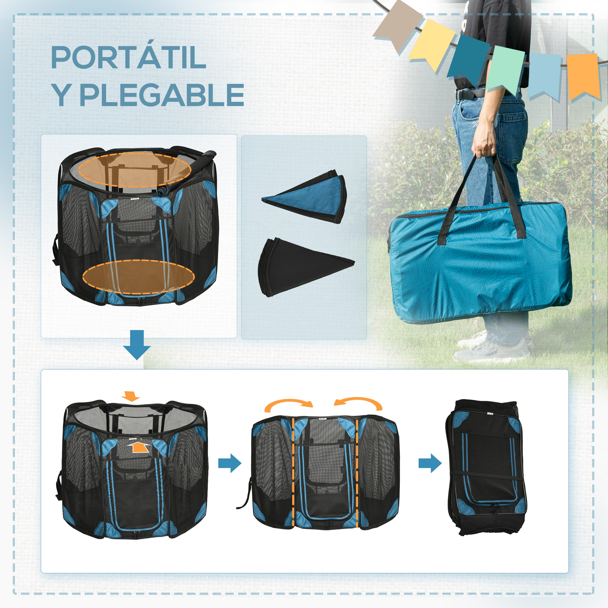 PawHut Parque Plegable para Perros y Gatos de 8 Paneles Parque de Juego para Mascotas con Bolsa de Transporte Recinto Portátil para Conejos Conejillos de Indias para Interior y Exterior Ø91×58 cm Azul