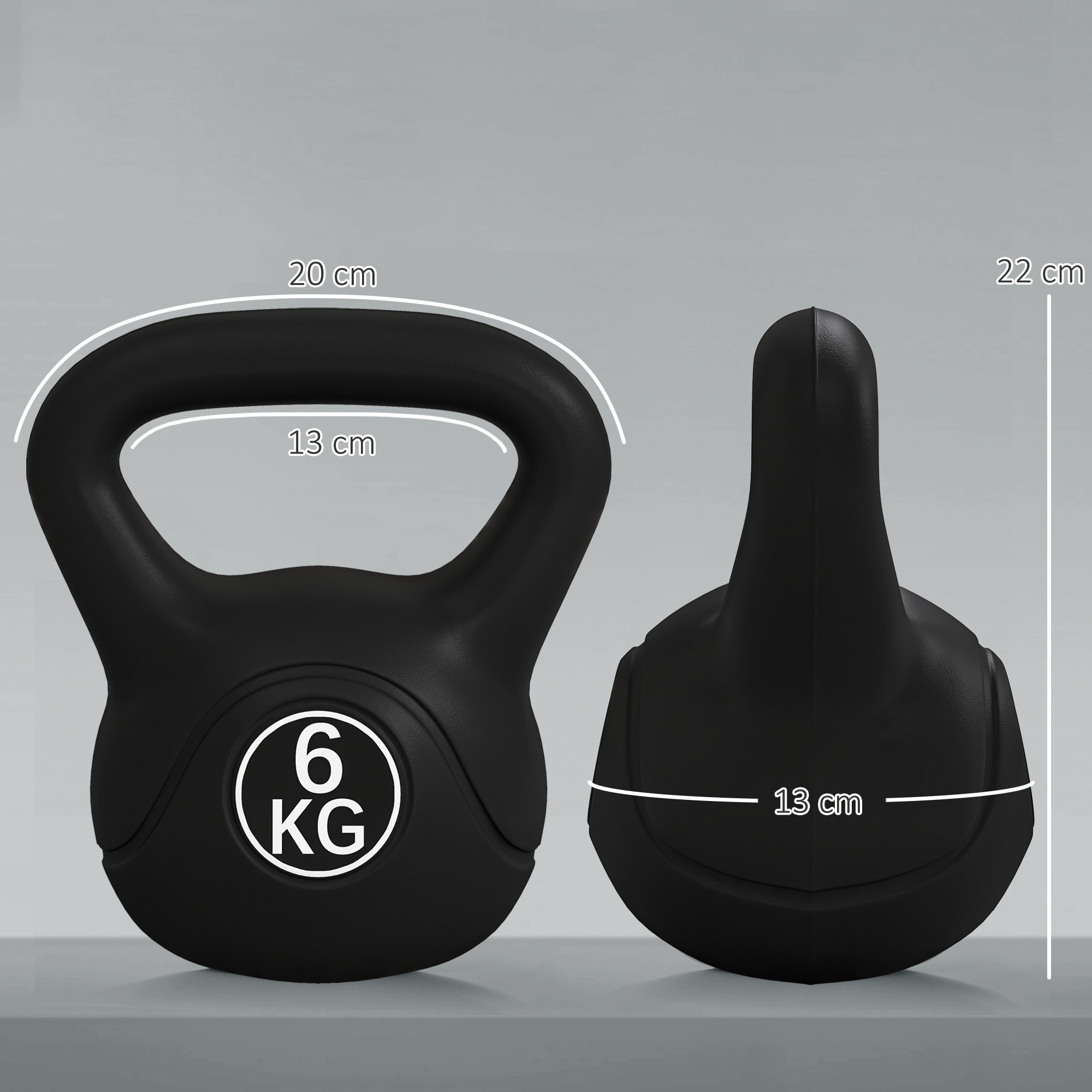 HOMCOM Pesa Rusa 6 kg, Kettlebell Revestimiento de Plástico y Relleno de Arena, con Mango Ancho y Base Plana, para Entrenamiento Culturismo, en Casa, Gimnasio, Negro