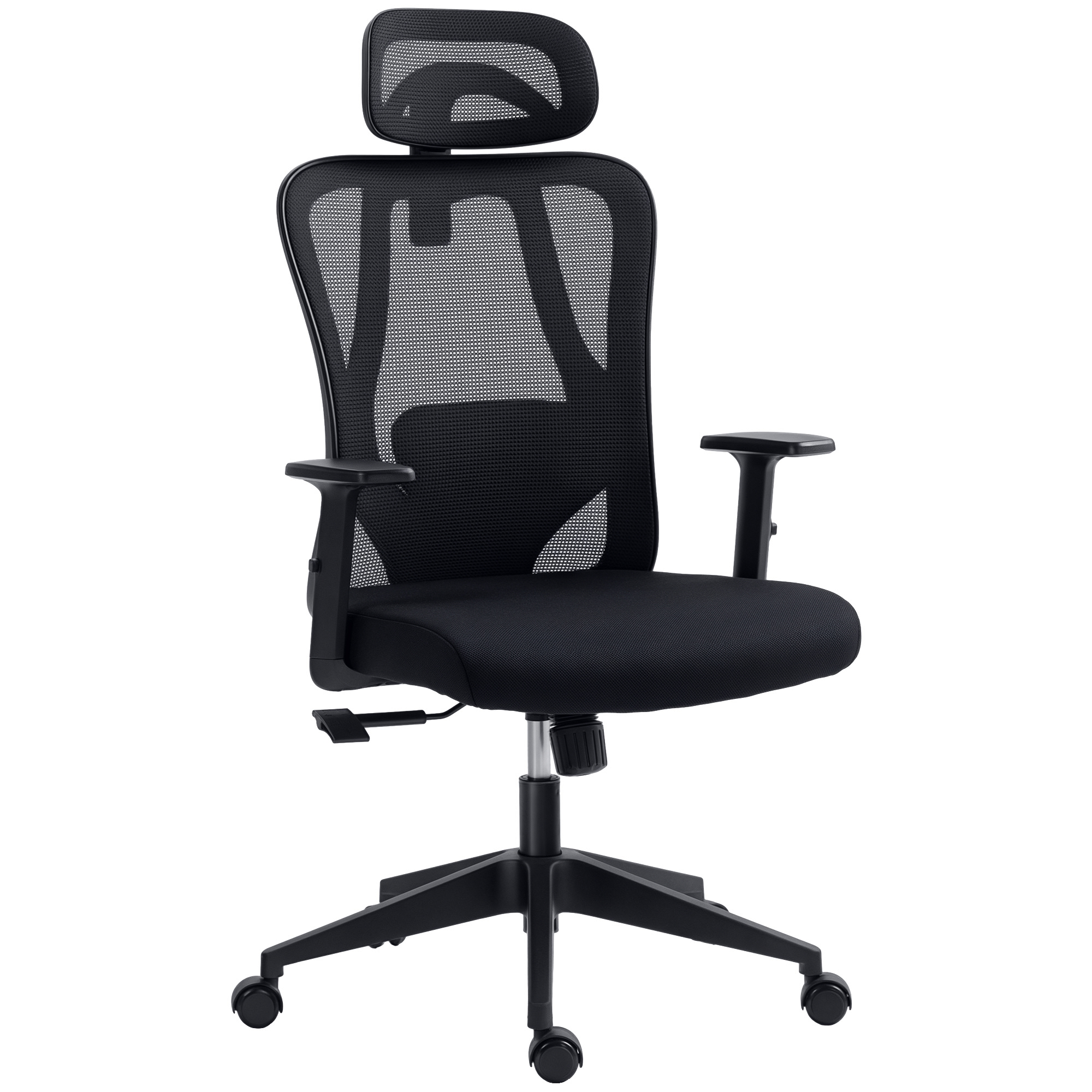 Vinsetto Silla de Oficina Giratoria con Reposabrazos 2D Silla Escritorio Regulable en Altura Reposacabezas Soporte Lumbar y Respaldo Alto Malla Transpirable 67x64x117-127 cm Negro