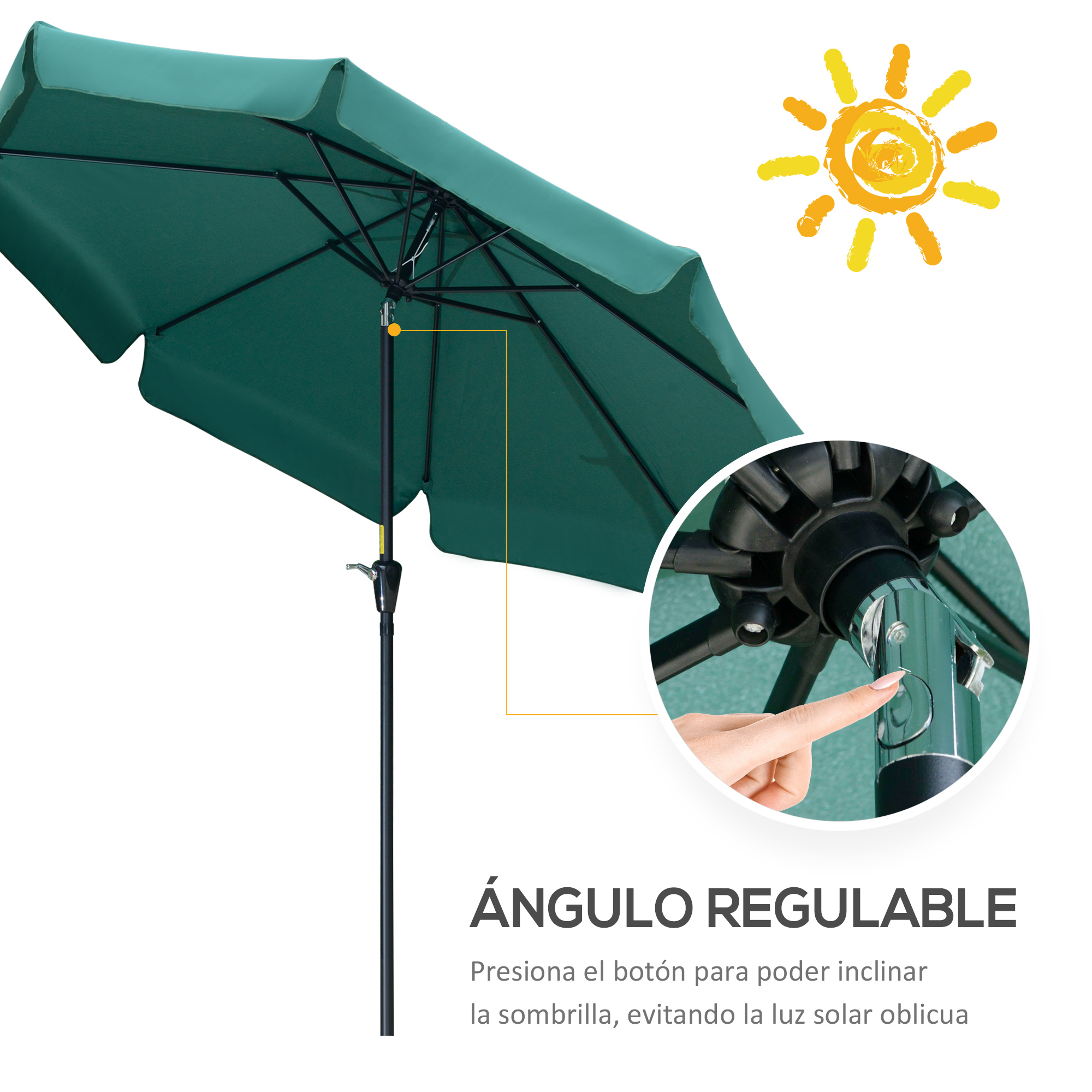Outsunny Sombrilla Terraza Exterior Ø266 cm Sombrilla de Jardín Inclinable con Protección UV50+ Poste de Aluminio y Manivela Parasol para Patio Terraza Verde