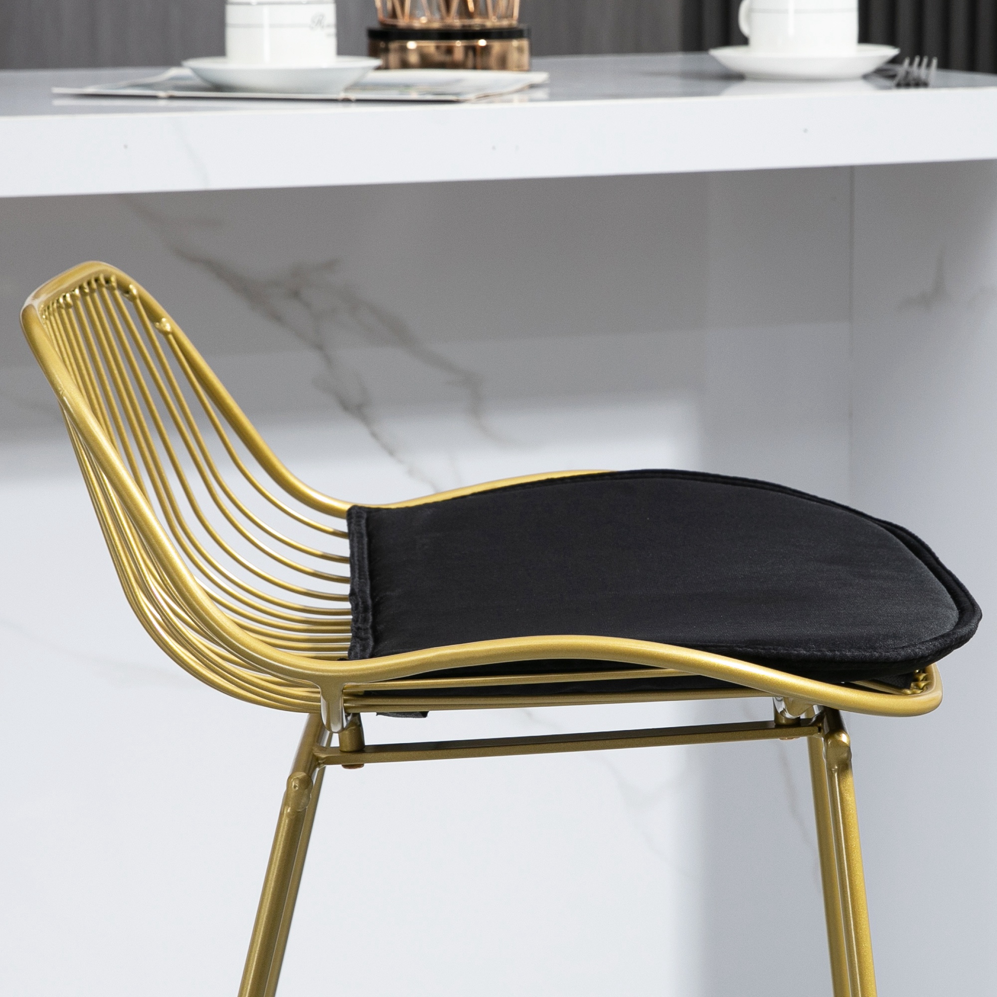 ¿Estás buscando taburetes altos para tu cocina? Este elegante conjunto de HOMCOM es ideal. Ya sea que desees comenzar la mañana con un abundante desayuno o terminar la noche tomando algo con los amigos. Gracias a su diseño elegante, este conjunto se integrará fácilmente en cualquier ambiente. Además, los 4 taburetes de bar, cuentan con respaldo curvo y reposapiés para una postura más relajada. Disfruta y crea un espacio cómodo para tus invitados con estos taburetes de bar. Características: Conjunto de 4 taburetes de idénticas características (referencia del pack de solo 2 unidades: 835-971V00GD) Su estilo elegante y moderno combinará perfectamente en cualquier ambiente El cojín mullido con tejido suave de tacto aterciopelado proporciona una gran comodidad Con respaldo curvo y reposapiés para una postura más relajada Estructura de acero resistente, estable e ideal para uso prolongado Pies con almohadillas de plástico para mayor estabilidad y para evitar que el suelo se raye Adecuado para altura de mesa de bar: 104-109 cm Requiere montaje Especificaciones: Color: dorado y negro Material: acero, espuma y poliéster Medidas totales (cada uno): 46,5x48x93 cm (LxANxAL) Medidas del asiento: 43x32x76 cm (LxANxAL) Altura del respaldo: 18 cm Altura del reposapiés: 29 cm Carga máxima: 120 kg (cada uno) Referencia: 835-P142 El paquete incluye: ● 4 x Taburete de bar; ● 1 x Manual de instrucciones