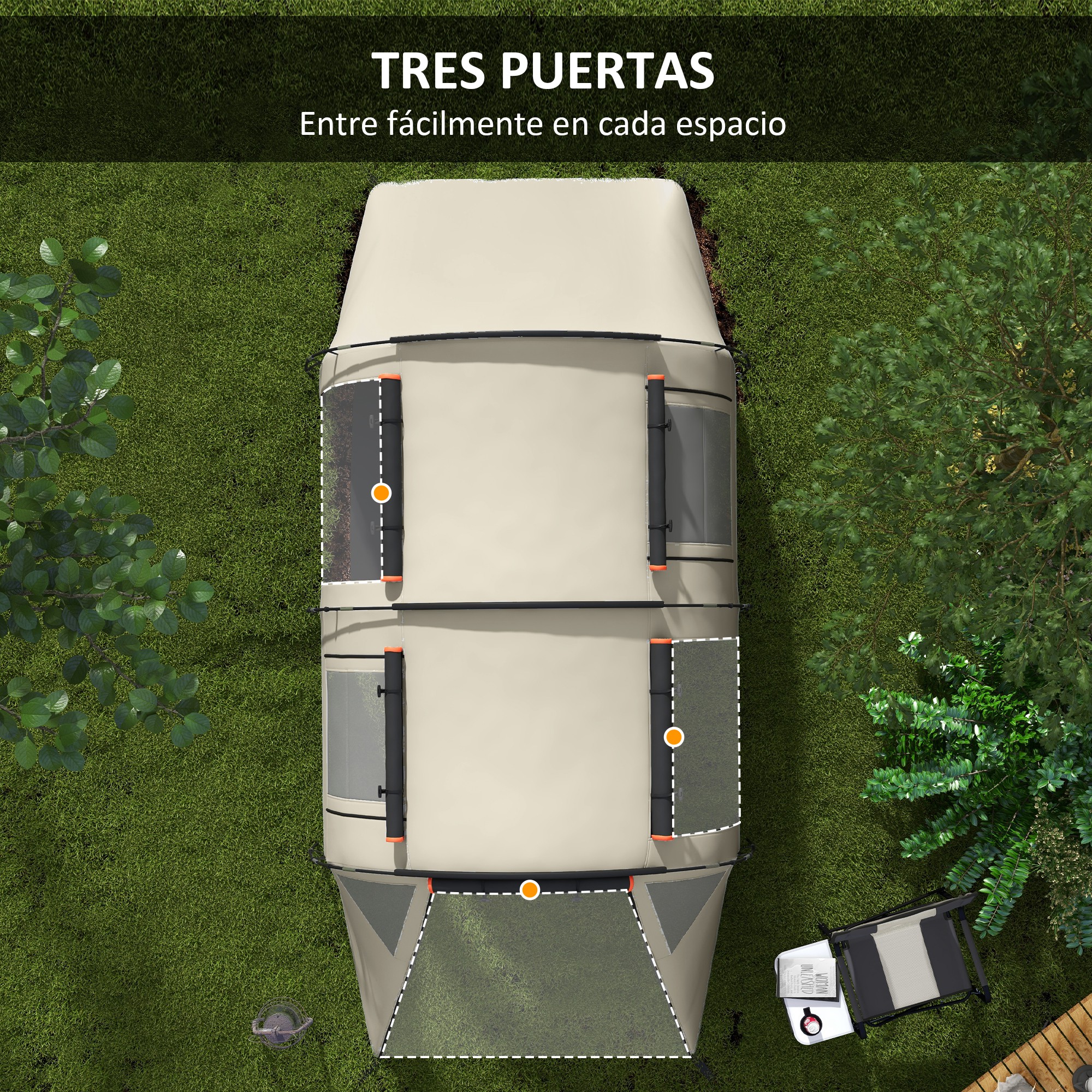 Outsunny Tienda de Campaña Familiar tipo Túnel para 4-5 Personas Tienda de Camping Plegable Impermeable con 2 Habitaciones 5 Puertas y Bolsa de Transporte para Senderismo 460x230x180 cm Caqui