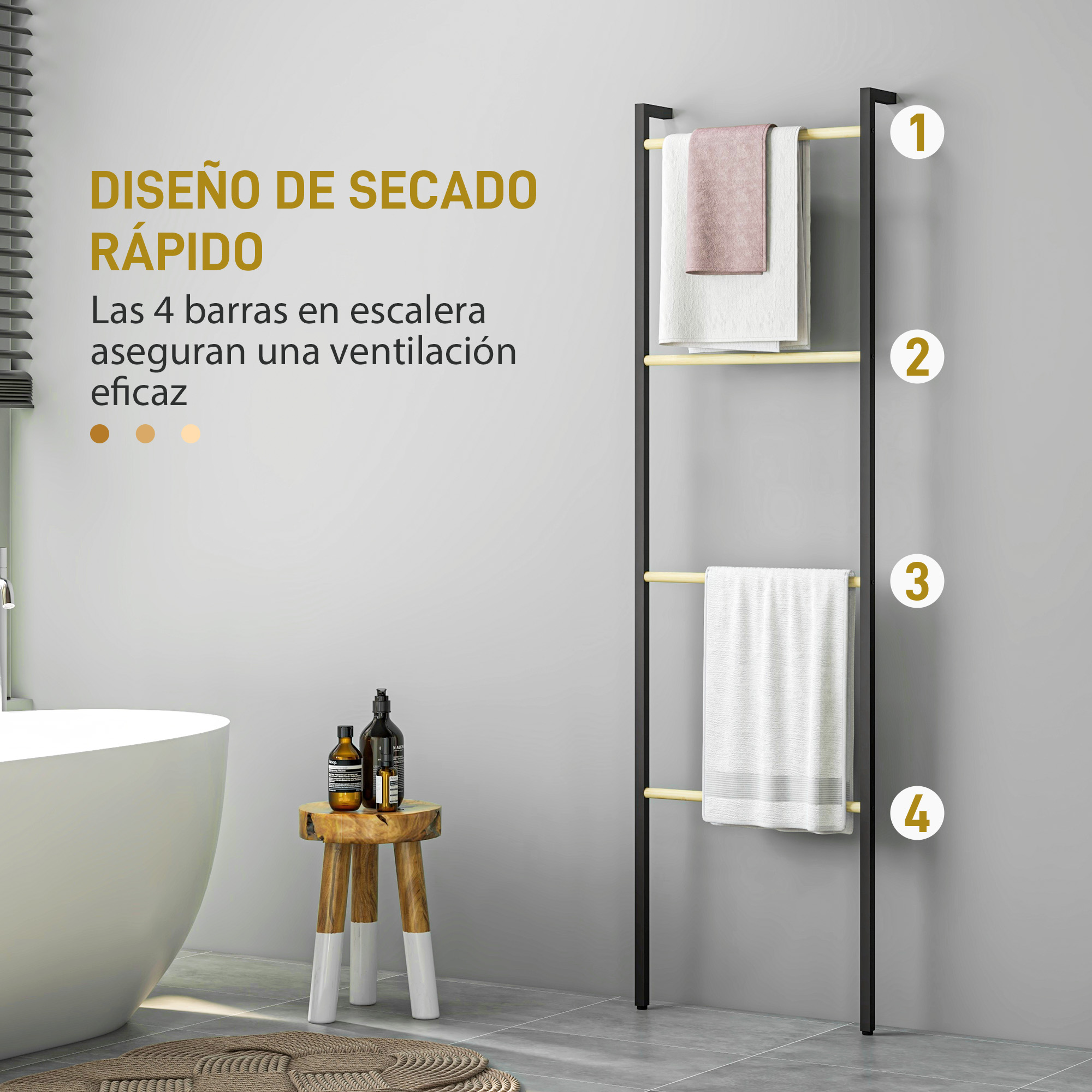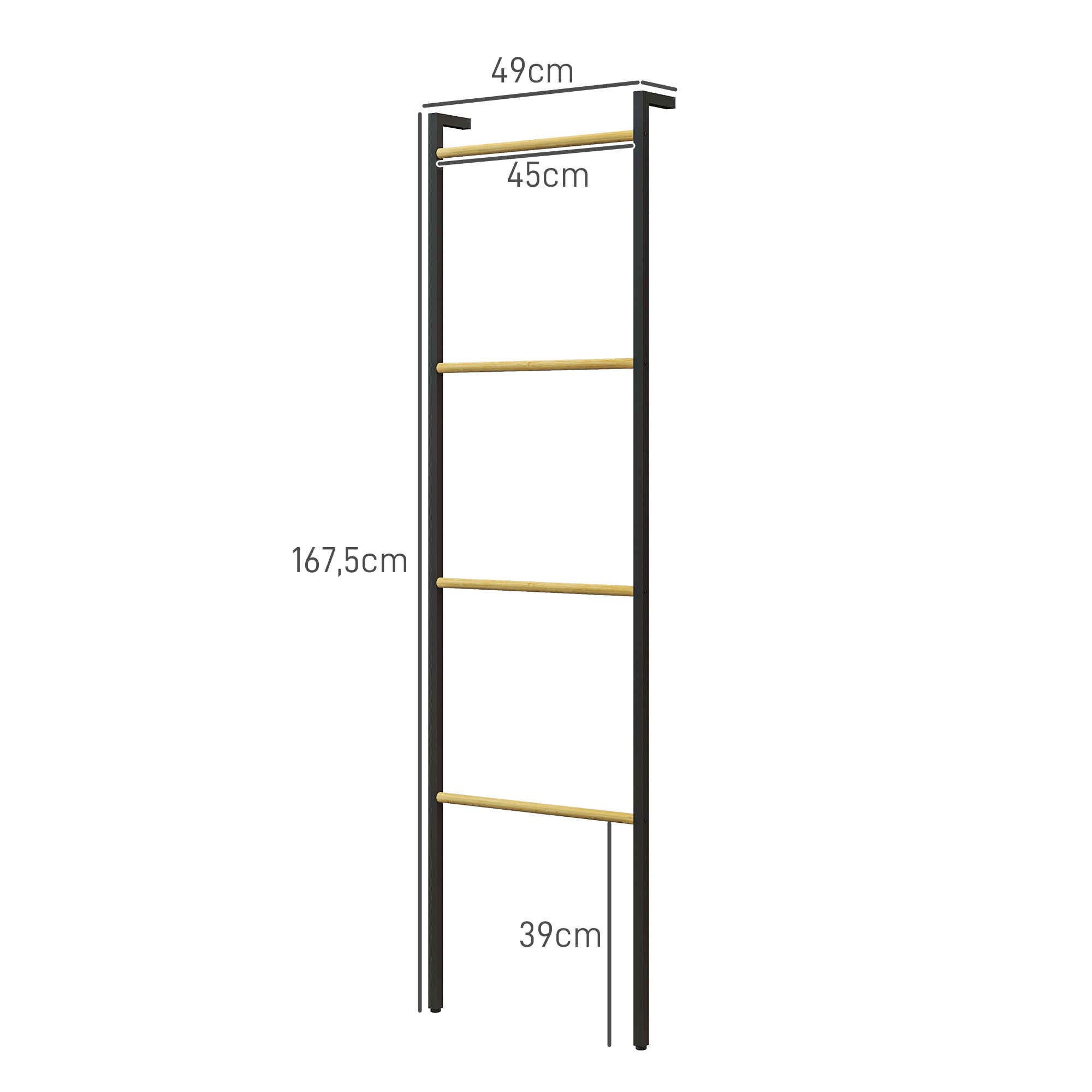 HOMCOM Toallero de 4 Niveles Toallero Escalera Apoyado en la Pared Toallero de Baño con 4 Barras de Bambú y Marco de Acero 49×5,5×167,5 cm Negro y Natural