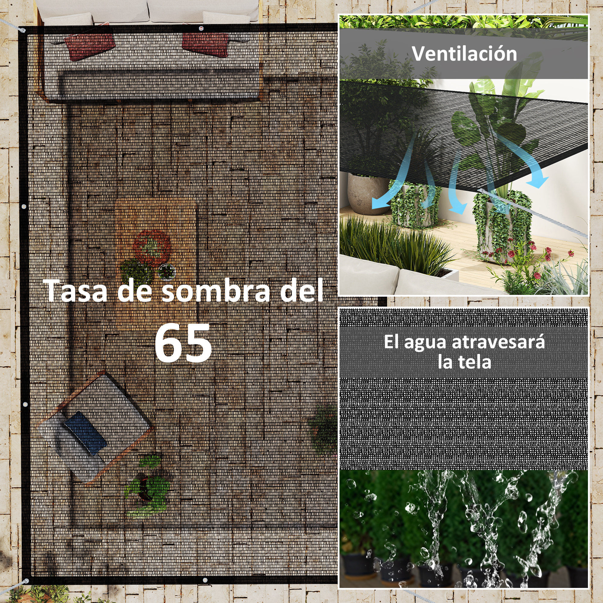 Mantente fresco y protege tus plantas con este práctico toldo de patio de Outsunny. Con un índice de sombreado del 65%, protege contra los rayos del sol. Hecho de tejido de PP transpirable, permite que se filtre el aire y que la lluvia traspase, ideal para que tus plantas estén protegidas y saludables. ¡Con este toldo de terraza podrás mantener tus plantaciones protegidas del sol en verano y del frío en invierno! Características: Toldo vela con tasa de sombreado del 65% que protege de la intensa luz solar, garantizando comodidad El tejido transpirable favorece la circulación del aire y la permeabilidad del agua Funcionalidad de doble temporada ofrece sombra en verano y protección contra las heladas en invierno Toldo exterior para el cuidado de invernaderos, plantas, flores y frutas El tejido de punto con puntadas de bloqueo previene el deshilachado Los bordes reforzados añaden robustez y resisten el desgaste El toldo cuenta con ojales para ofrecer una instalación sencilla Especificaciones: Color: negro Material: PP Medidas totales: 305×200 cm (LxAN) Índice de sombreado: 65% Referencia: 840-267V00BK El paquete incluye: ● 1 x Toldo vela