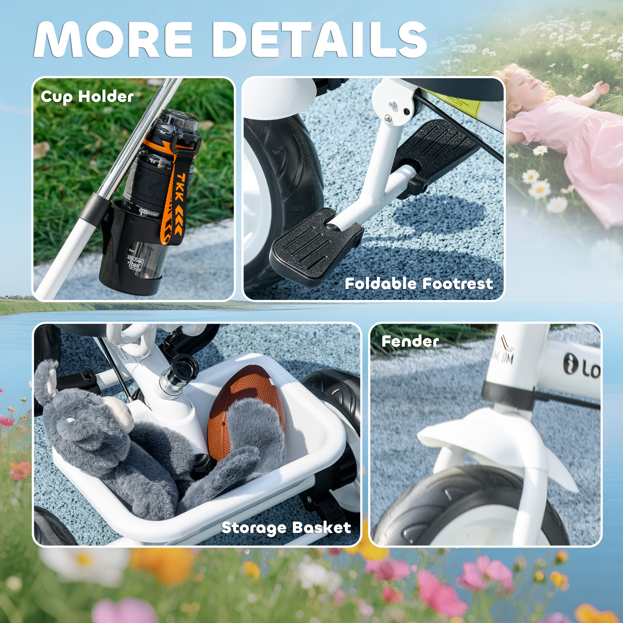 HOMCOM Triciclo para Bebés 6 en 1 Triciclo Evolutivo para Niños de +12 Meses con Toldo Plegable Mango de Empuje Telescópico y Desmontable Asiento Ajustable Cesto y Portabotellas Blanco