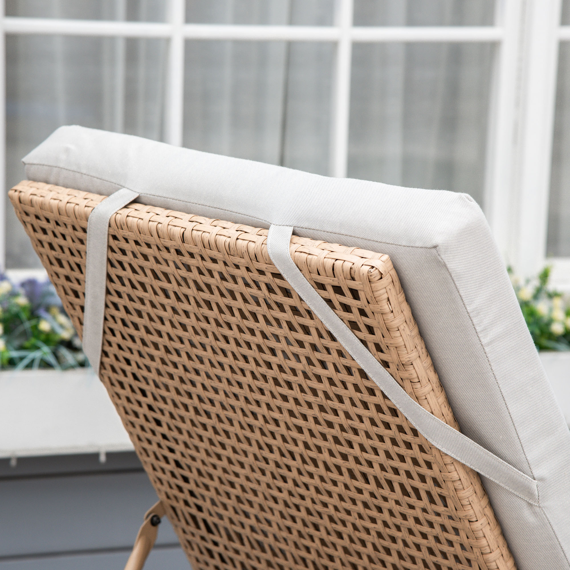 Estas tumbonas de ratán sintético de Outsunny tienen una estructura de acero, con una gran resistencia a la intemperie y a los rayos UV. Su respaldo tiene 5 posiciones ajustables para ofrecerte una mayor relajación, pudiendo regularlo según quieras estar más o menos incorporado para tomar una siesta o leer un libro, por ejemplo. Además, tienen dos ruedas para que puedas moverlas fácilmente, sea para guardarlas, para ir en busca de sombra en tu patio o jardín, etc. Características: Pack de tumbonas aptas para terraza, patio, jardín o cualquier espacio al aire libre Tumbonas de jardín con estructura de metal y ratán PE sintético, ofrecen un soporte resistente y fácil de limpiar y mantener Su respaldo ajustable en 5 posiciones permite ajustarlo a tus diferentes necesidades Incluyen cojín suave y grueso de 2 secciones para mayor comodidad y que se adapte al respaldo de las tumbonas La funda del cojín tiene una cremallera para facilitar su extracción y lavado Los cojines tienen tiras de cuerda en la parte posterior para poder fijarlos a la estructura y no salgan despedidos por el viento Requieren montaje Especificaciones: Color: natural y beige Material: acero, ratán PE y poliéster Medidas totales de cada tumbona: 200x65x31 cm (LxANxAL) Medidas del asiento: 65×125 cm (LxAN) Carga máxima: 160 kg (cada tumbona) Cumplen con: EN581 Referencia: 862-P023 El paquete incluye: ● 2 x Tumbona de jardín (referencia: 862-058V01); ● 1 x Manual de instrucciones