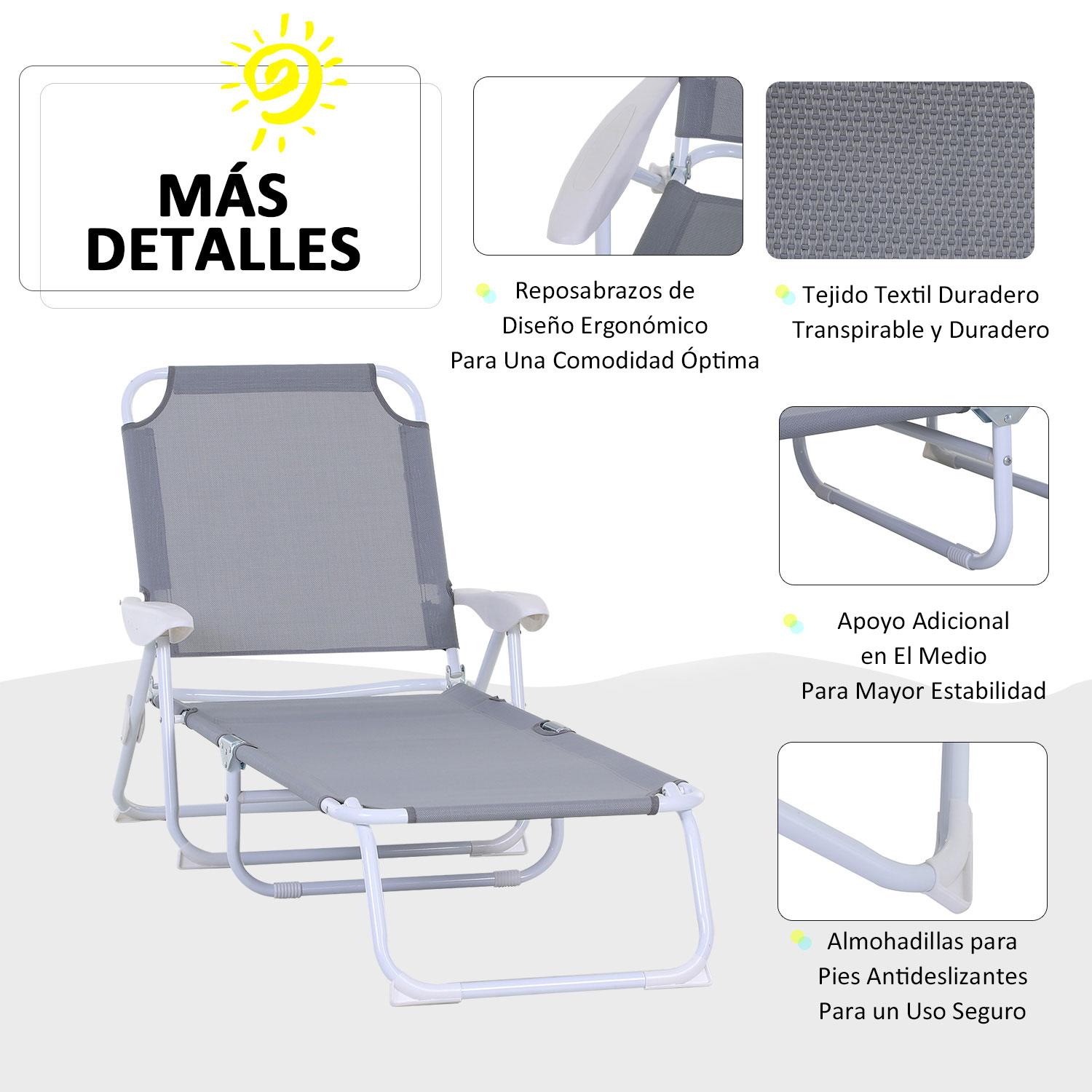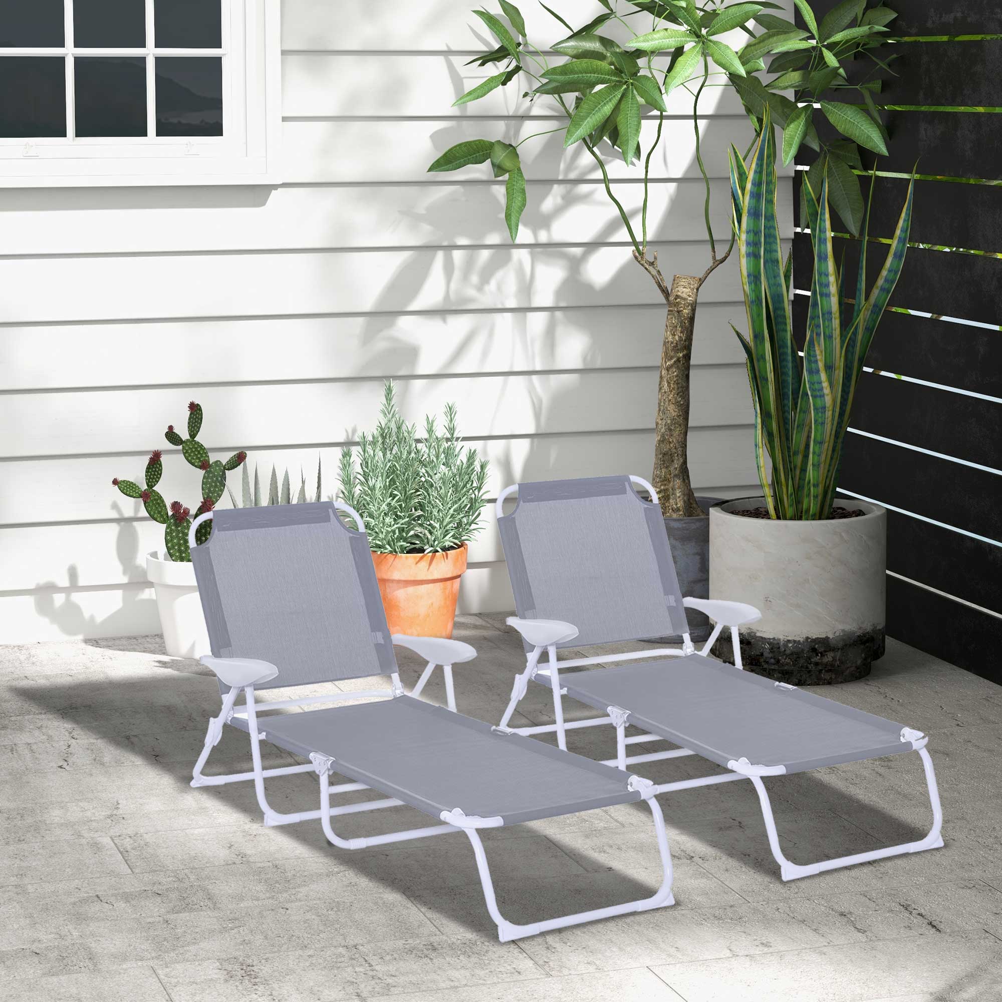 Outsunny Conjunto de 2 Tumbonas Plegables Tumbonas de Jardín con Respaldo Ajustable en 4 Niveles Carga 120 kg para Terraza Piscina 186x66x80 cm Gris