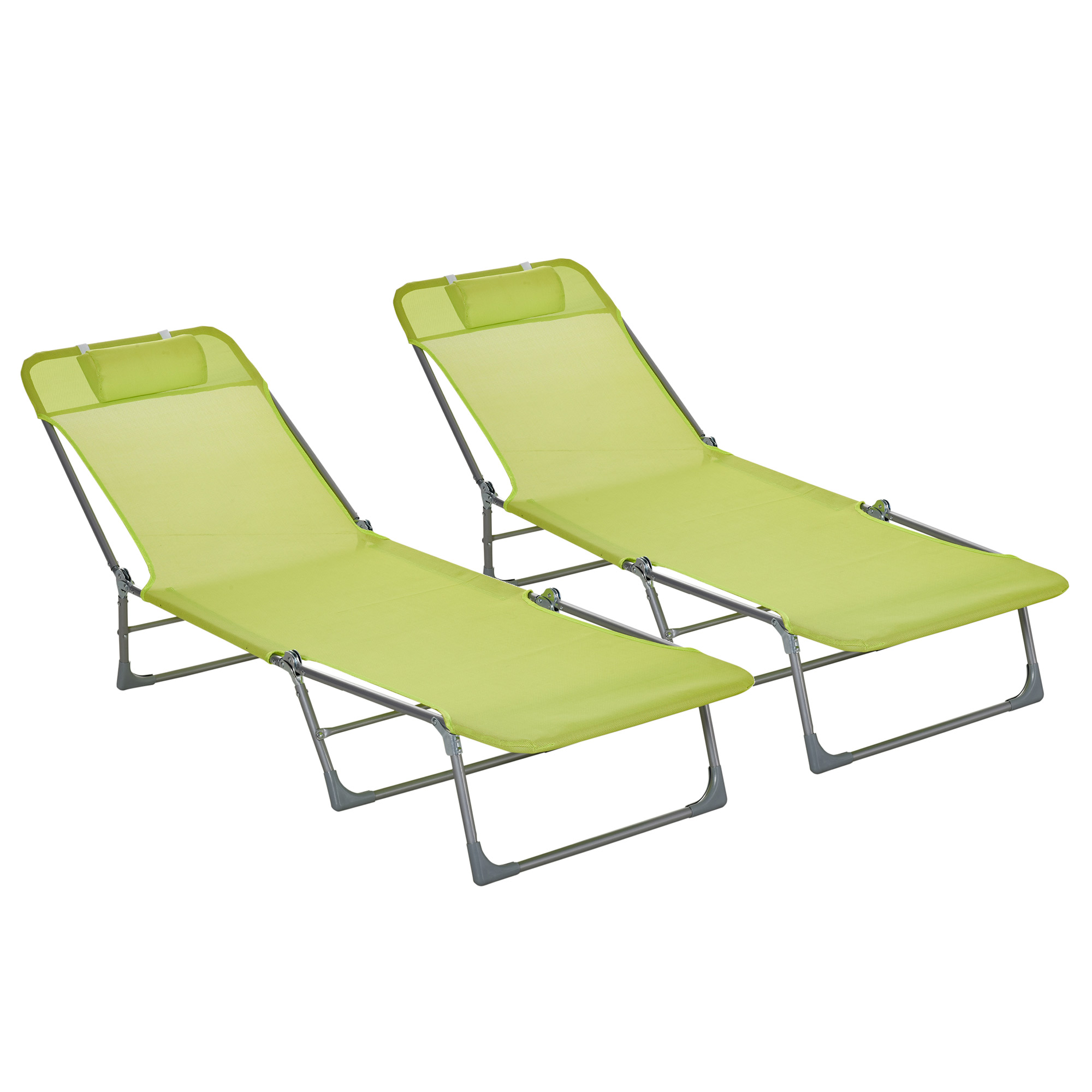 Outsunny Conjunto de 2 Tumbonas Plegables Tumbonas de Jardín Reclinables con Respaldo Ajustable en 5 Posiciones y Reposacabezas Carga 120 kg para Terraza Piscina Playa 182x56x24,5 cm Verde