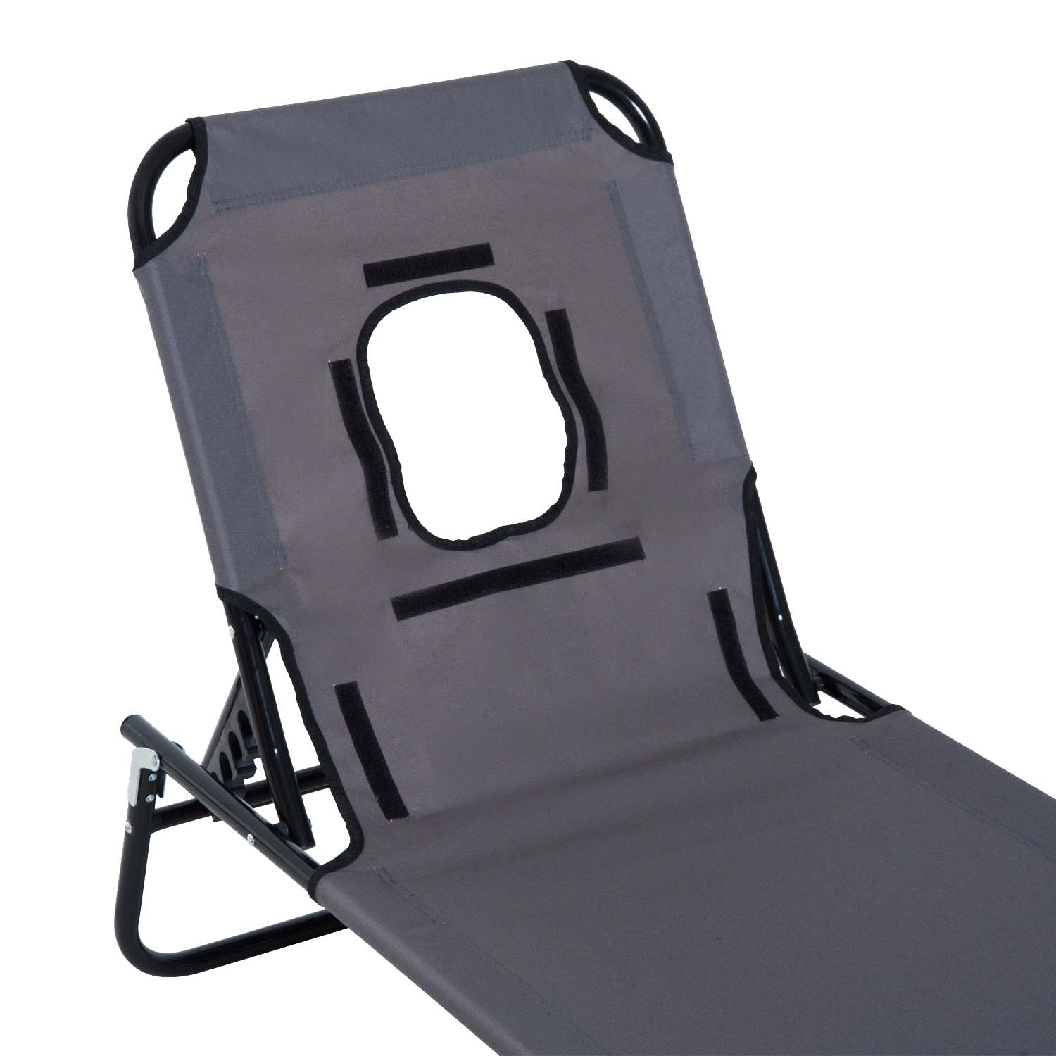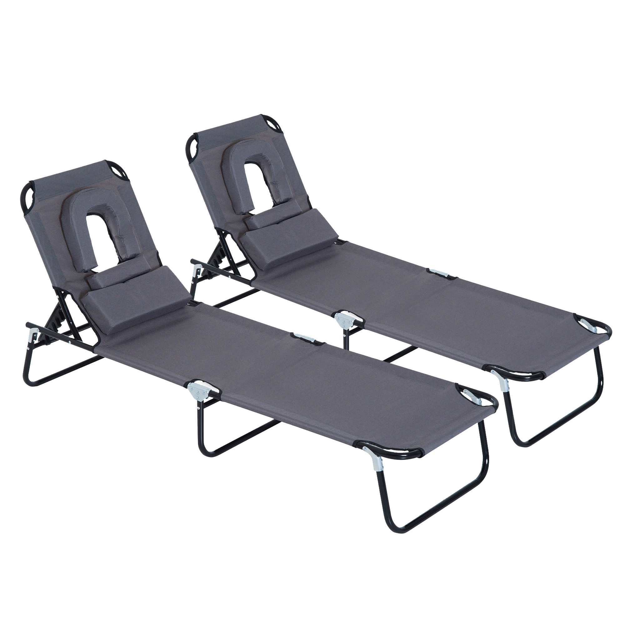 Outsunny Juego de 2 Tumbonas Plegables Tumbonas de Jardín con Respaldo Ajustable en 4 Posiciones Orificio de Lectura y Almohada para Camping Playa Terraza 190x56x28 cm Gris
