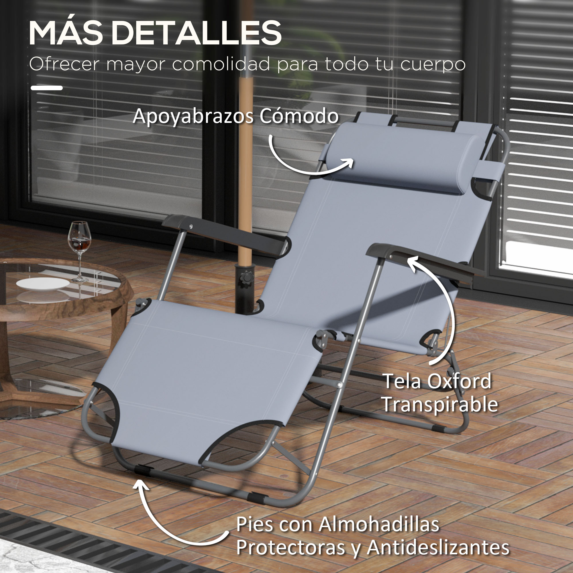 Si quieres unas tumbonas de relax plegables cómodas, estas de Outsunny cumplen con los requisitos y, además, son ligeras y plegables. Ideales para tener en el jardín, terraza o llevártelas de vacaciones a la playa o de camping. Con estructura de metal y tela Oxford transpirable, cuentan con 2 posiciones para poder usarlas como sillas o tumbonas, y, además, tienen un cojín apoyacabezas extraíble para acomodar mejor el cuello, por ejemplo cuando se lee un libro. Características: Tumbonas reclinables y plegables con reposabrazos, ideales para usar al aire libre Fabricadas con metal resistente y tela Oxford transpirable, lo que las hacen duraderas y fáciles de limpiar Respaldo ajustable en 2 posiciones para adaptarse a las necesidades de los distintos usuarios Incluyen un cojín reposacabezas extraíble para mayor comodidad Su diseño bien pensado es perfecto para aliviar el estrés y proporcionar relajación Son perfectas para el jardín, patio, terraza, playa, junto a la piscina y otros espacios al aire libre Especificaciones: Color: gris Material: metal y tela Oxford Medidas totales: 118x60x80 cm (LxANxAL)(cada tumbona) Medidas plegadas: 90×60,5×12 cm (LxANxAL) Medidas del asiento: 47×50 cm (LxAN) Medidas del respaldo: 47×66 cm (LxAN) Medidas del reposapiés: 47×40 cm (LxAN) Cojín reposacabezas: 38x13x6 cm (LxANxAL) Carga máxima: 136 kg (cada una) Referencia: 84B-P178 El paquete incluye: ● 2 x Tumbona plegable (referencia: 84B-044MX); ● 1 x Manual de instrucciones