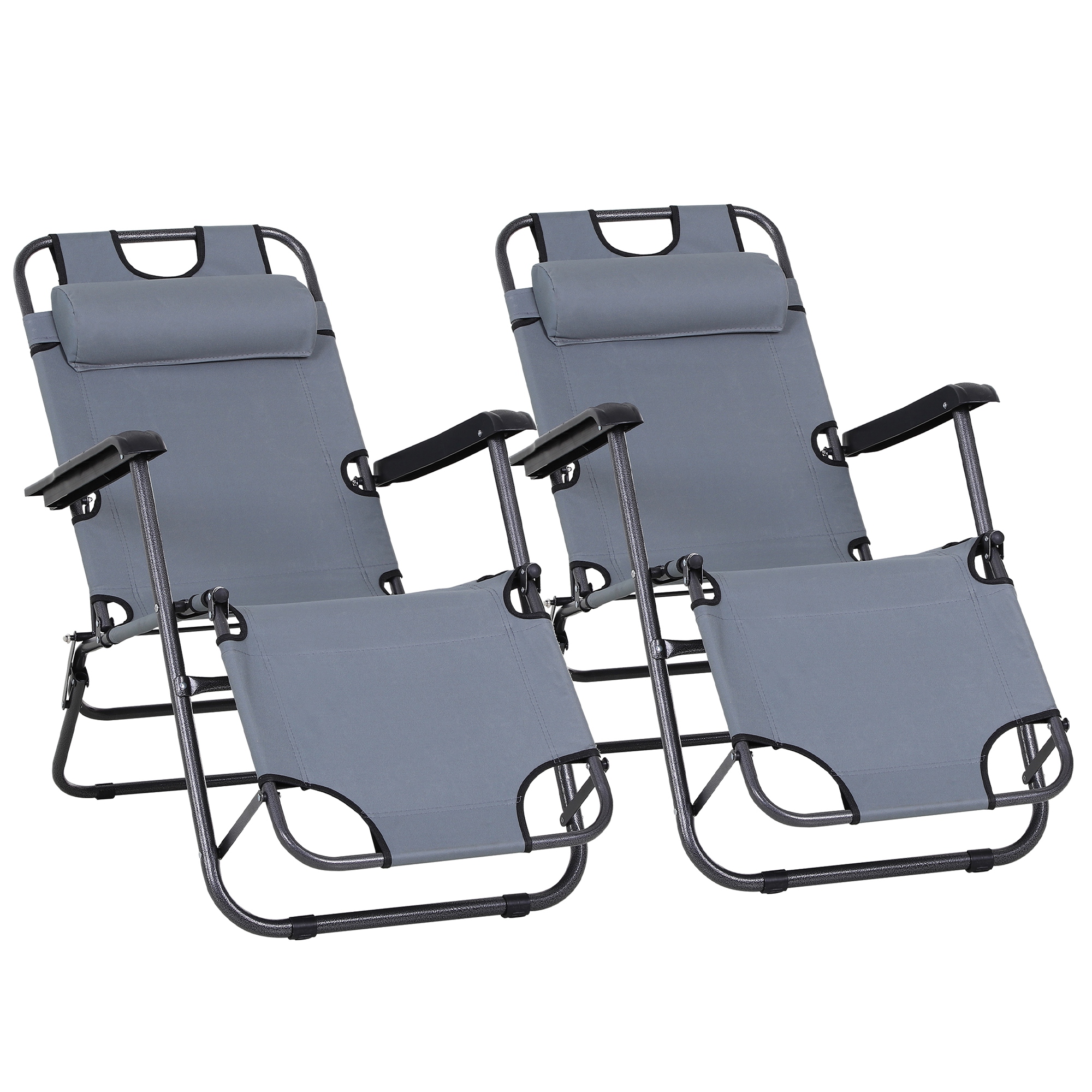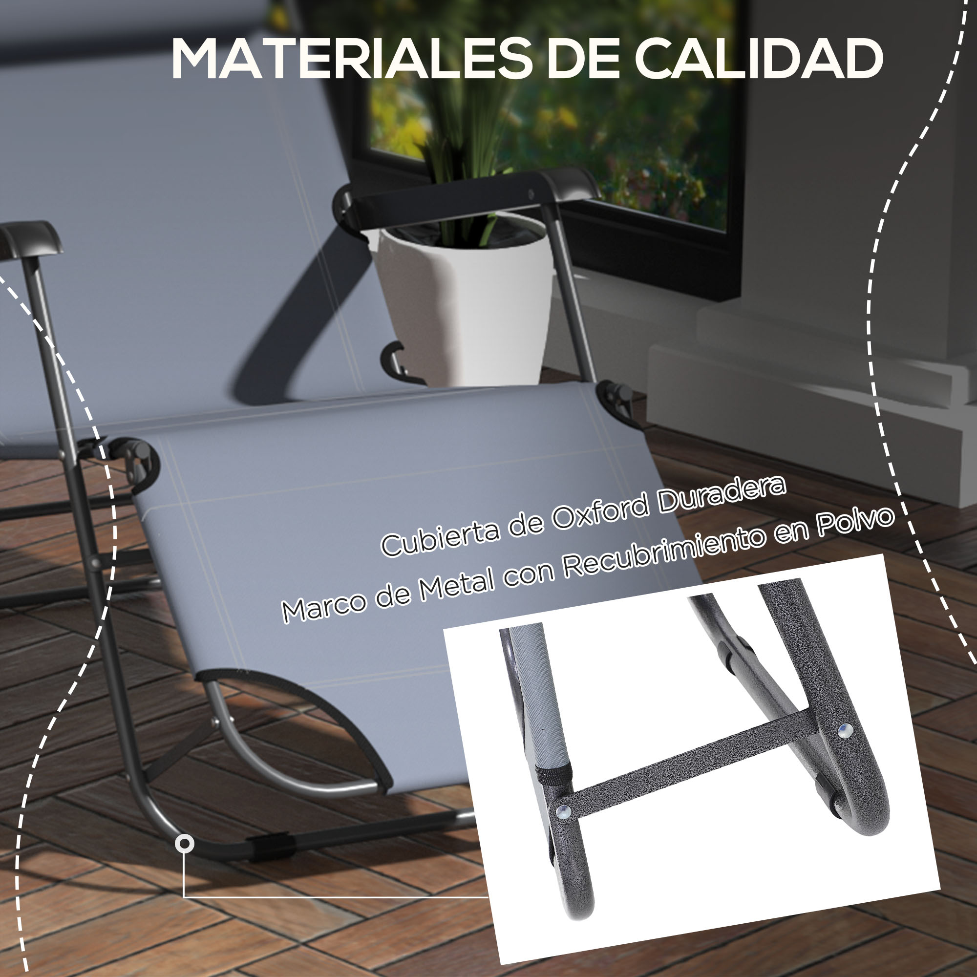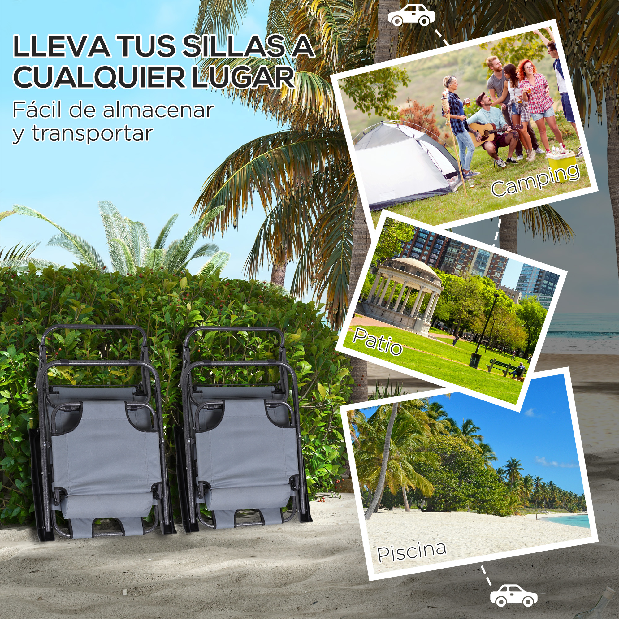 Outsunny Conjunto de 2 Tumbonas Reclinables y Plegables Tumbonas de Jardín con Respaldo Ajustable Reposacabezas y Bolsillo Carga 136 kg 118x60x80 cm Gris