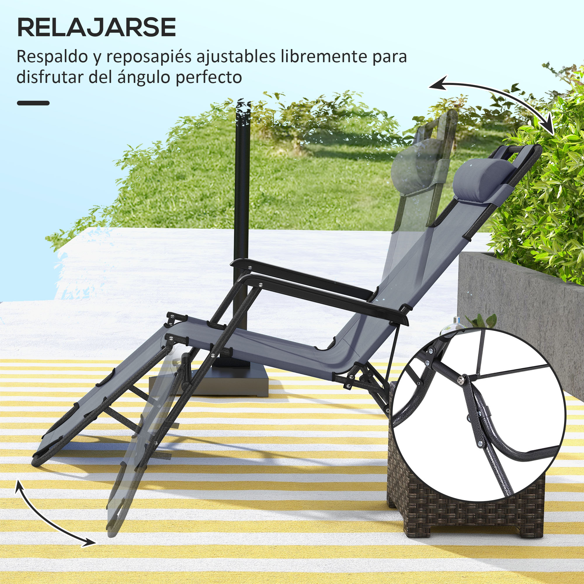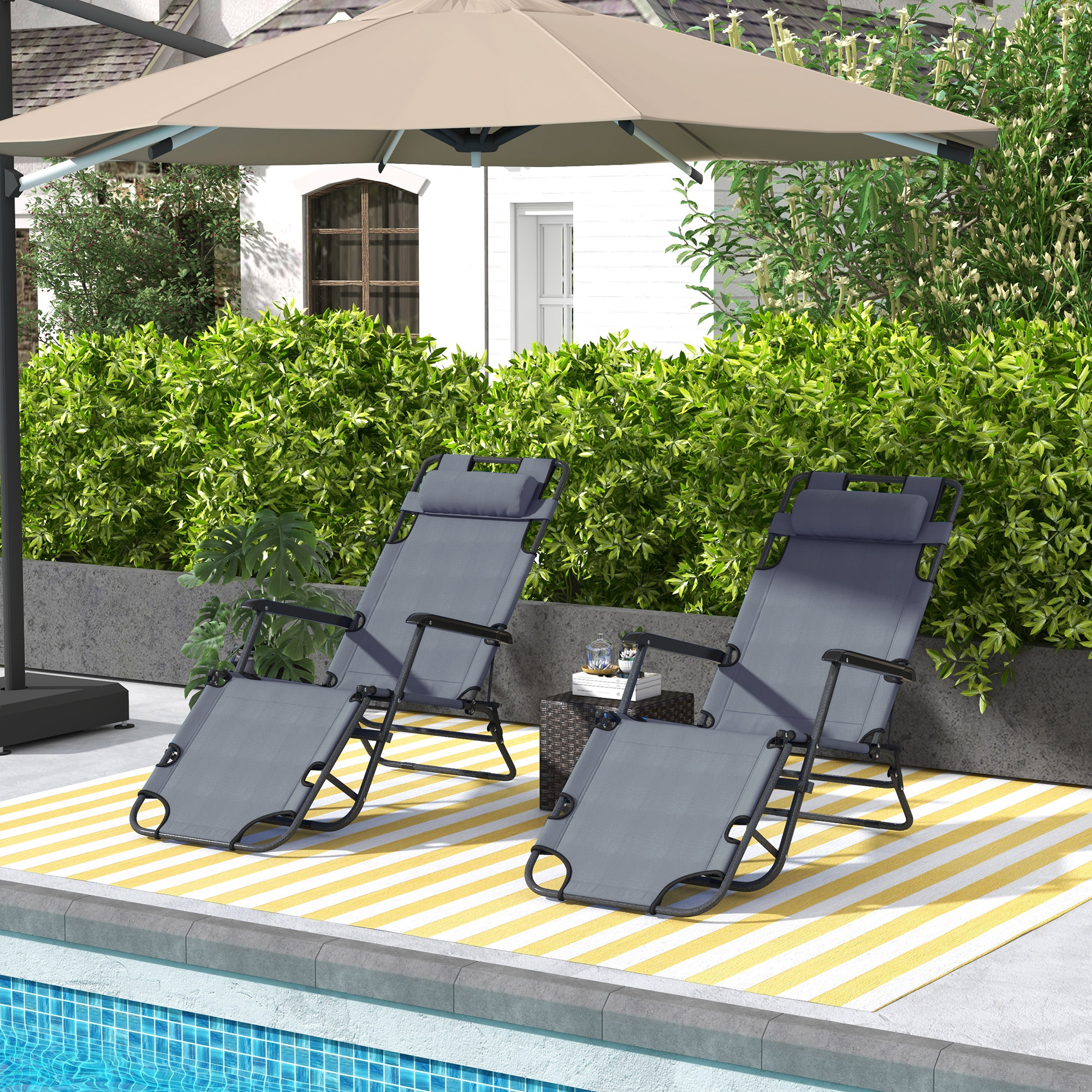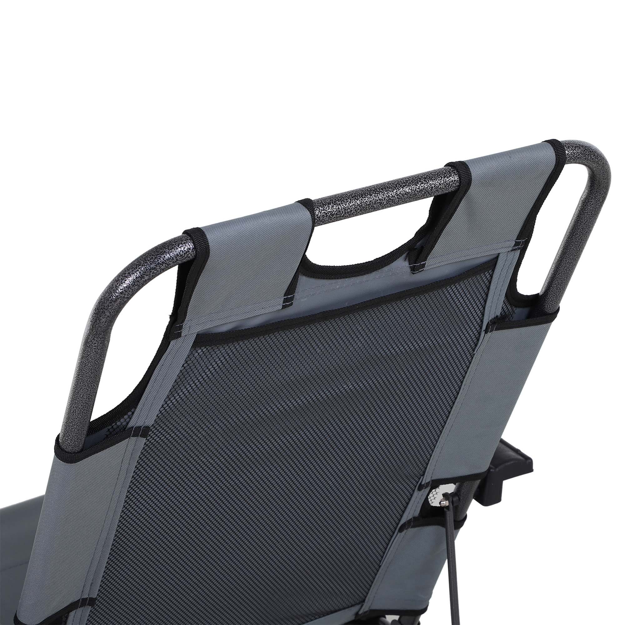 Outsunny Conjunto de 2 Tumbonas Reclinables y Plegables Tumbonas de Jardín con Respaldo Ajustable Reposacabezas y Bolsillo Carga 136 kg 118x60x80 cm Gris