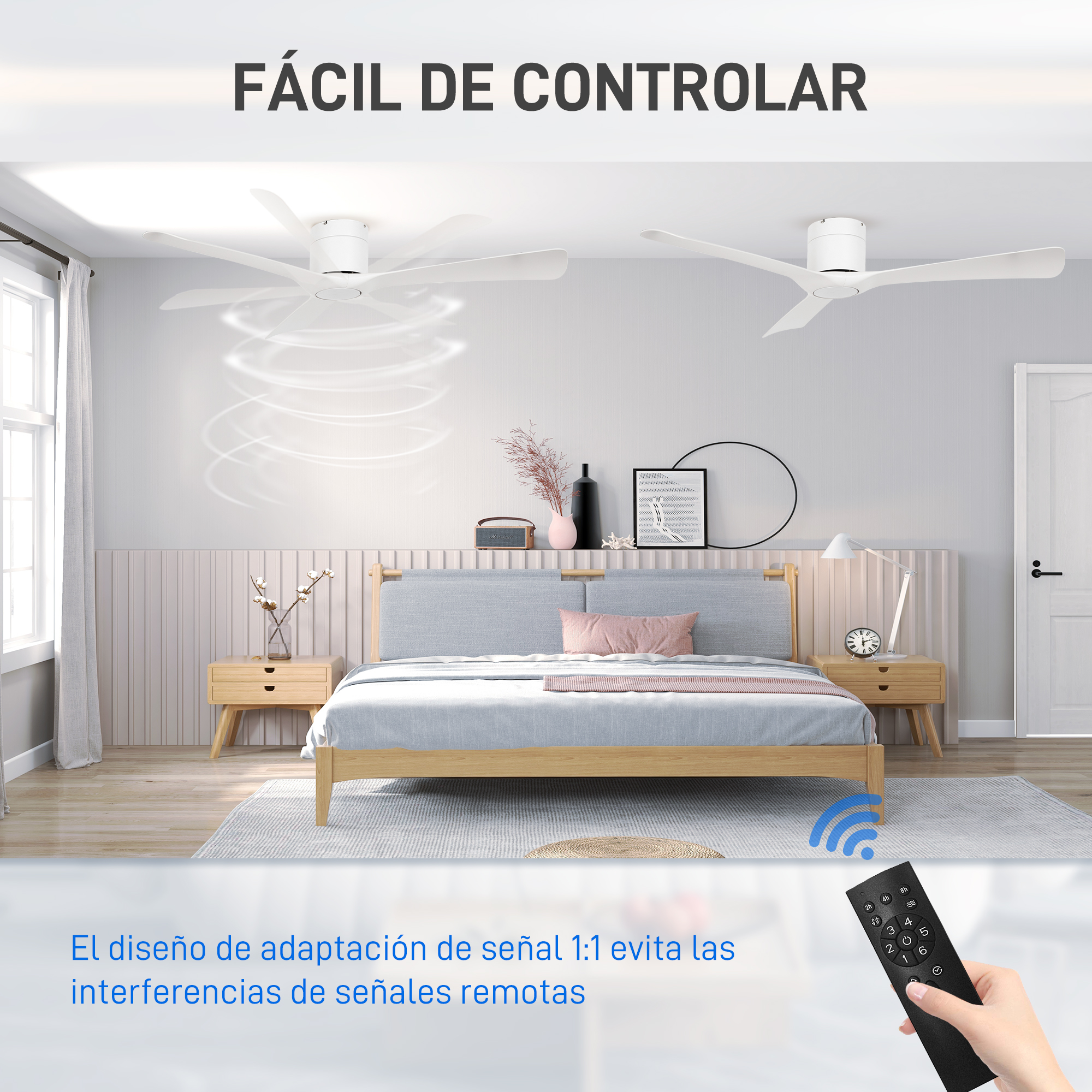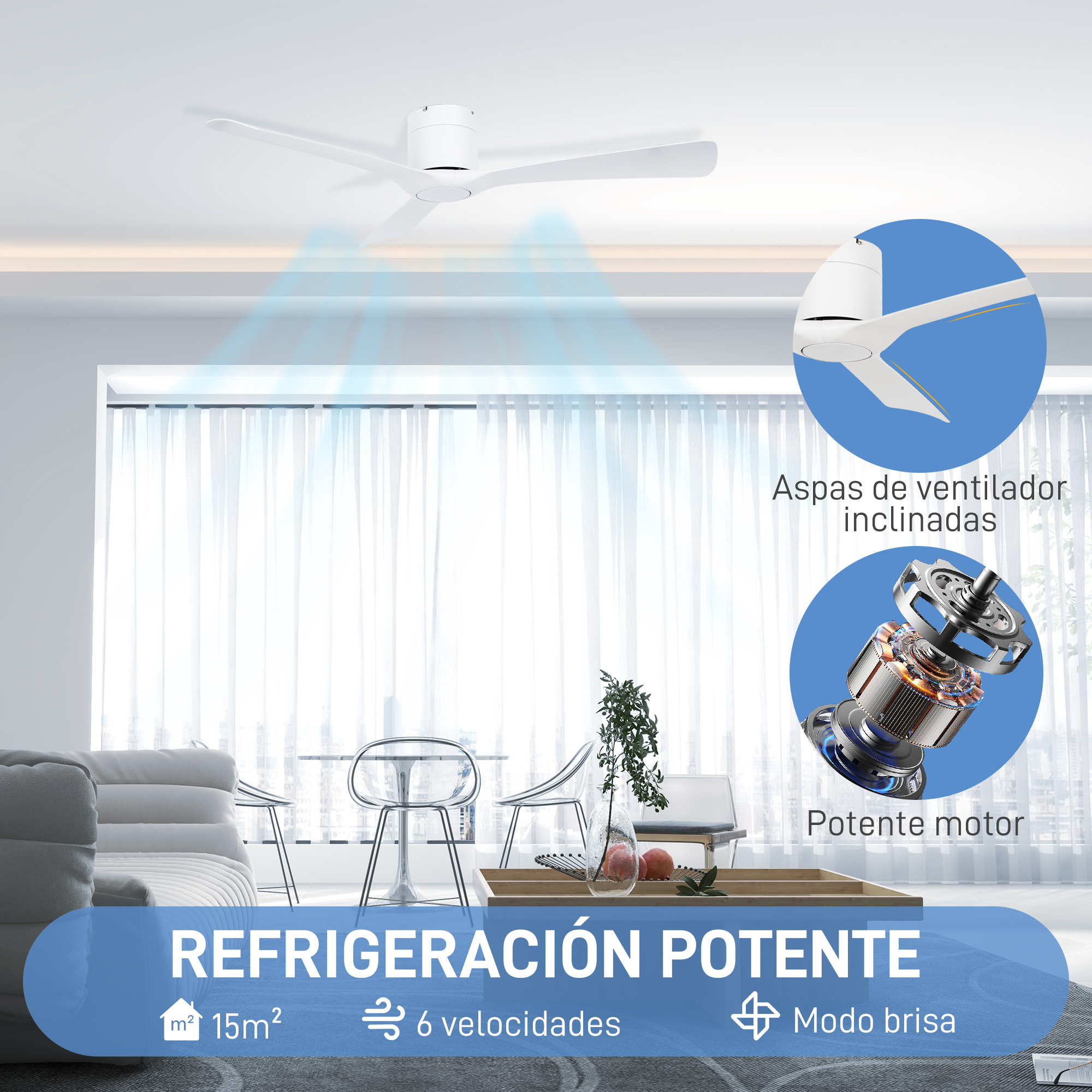 HOMCOM Ventilador de Techo 29W con Motor Reversible Mando a Distancia Ventilador Silencioso Ø132 cm con 3 Aspas Reversibles 6 Velocidades Temporizador para Dormitorio Sala de Estar Blanco
