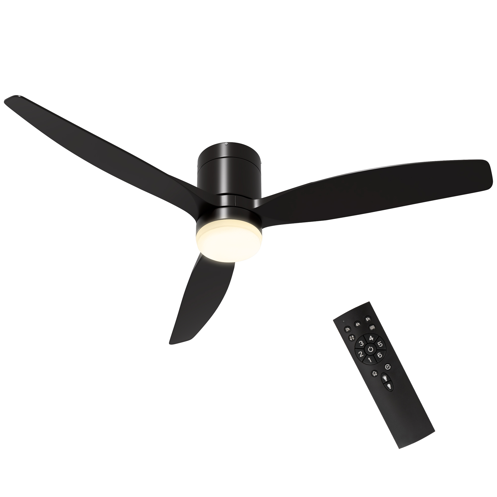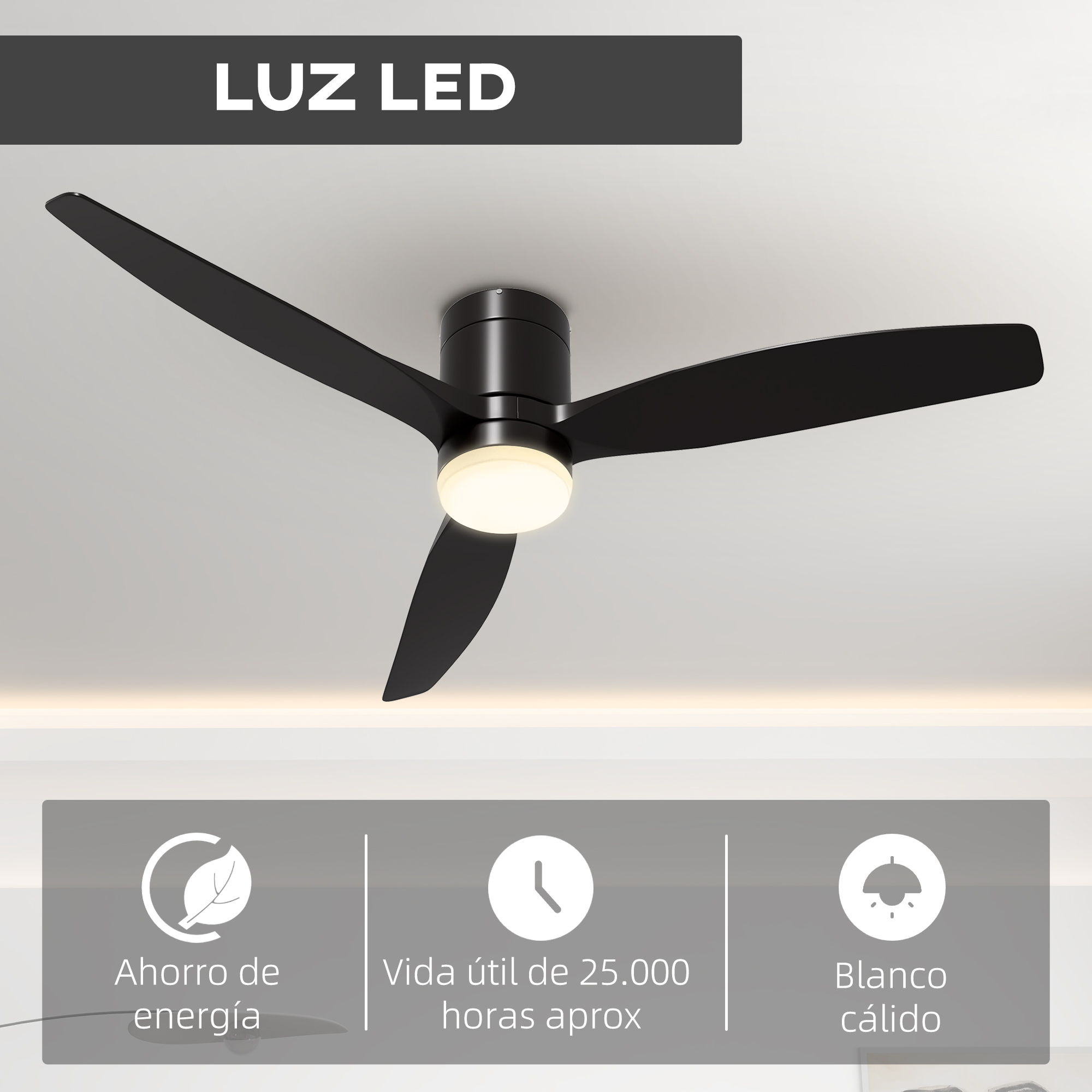 HOMCOM Ventilador de Techo con Luz LED 46W Motor DC Ventilador de Techo Silencioso Ø132 cm con 3 Aspas Reversibles Control Remoto 6 Velocidades para Dormitorio Efecto 10~15 m² Negro