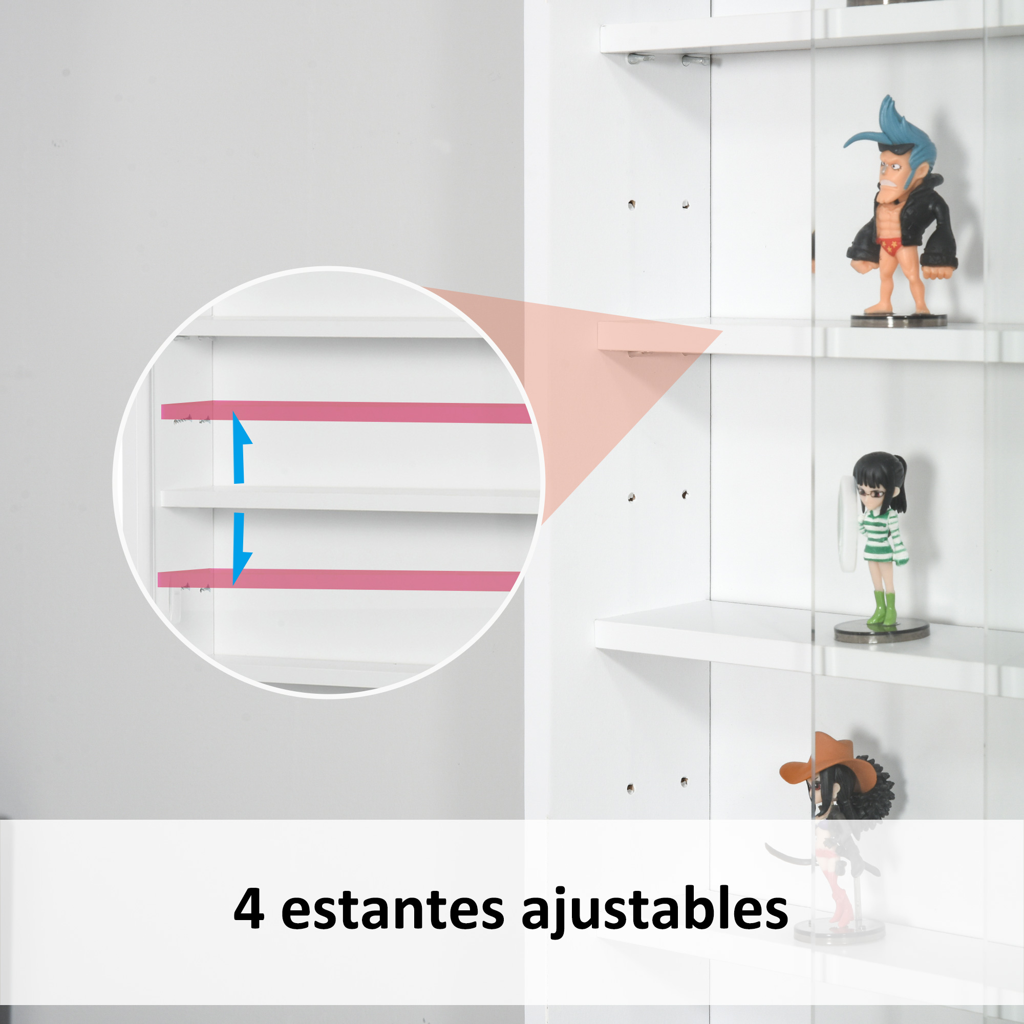 ¿Eres coleccionista de figuritas, cajas o muñecos? ¿Tienes muchos artículos pequeños que no sabes donde poner? Si estás en una de estas situaciones o parecida, necesitas esta vitrina de pared de HOMCOM. Se puede fijar en la pared como un armario y cuenta con 4 baldas interiores ajustables en altura, para que puedas colocar tus colecciones en 5 estantes diferenciados. Las 2 puertas de cristal protegen los artículos del polvo, a la vez que permiten que puedas observarlos desde fuera. Características: Vitrina de pared para disfrutar de tus colecciones sin ocupar espacio en el suelo Esta vitrina de cristal con 4 estantes interiores ajustables en altura 2 puertas de vidrio correderas, para proteger los artículos del polvo sin renunciar a su observación Hecho de melamina de madera, resistente y duradero Se debe de montar en horizontal Incluye todos los accesorios necesarios para su montaje Especificaciones: Color: blanco Material: melamina de madera y cristal Medidas totales: 80×9,5×60 cm (LxANxAL) Medidas de cada puerta: 39×57,5 cm (LxAL) Medidas de cada estante: 77×7,5 cm (LxAN) Cada nivel de los estantes ajustables: 6,4 cm Carga máxima: 2 kg (cada estante) Referencia: 833-761WT El paquete incluye: ● 1 x Vitrina de pared; ● 1 x Manual de instrucciones